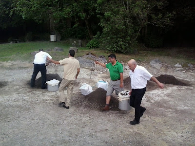 A retirar os cozidos debaixo da terra.